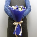 «Лавандовое созвездие» Букет из розы, гвоздики, статица и хлопка