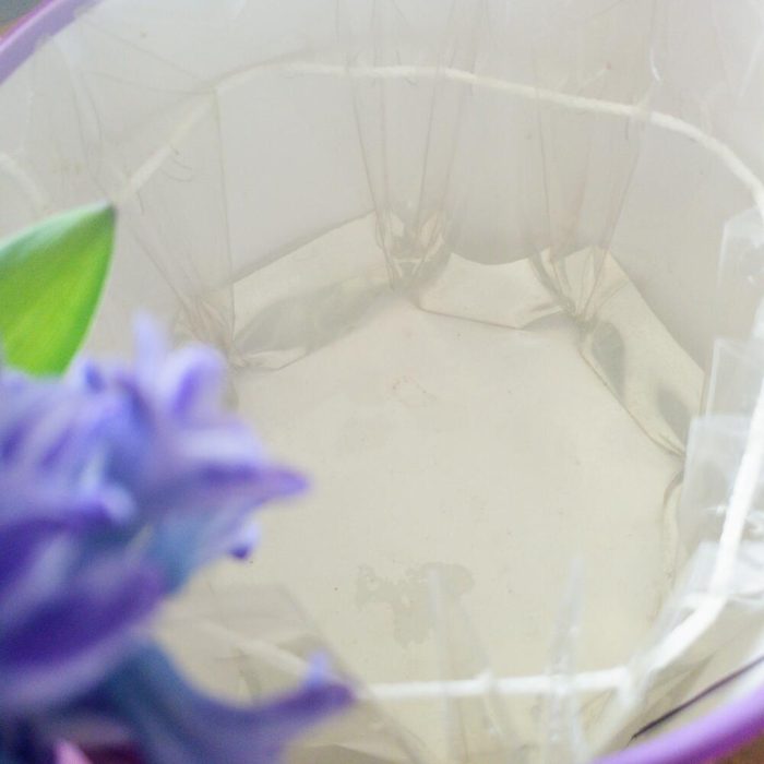 Лента атласная – 2 шт.Коробка шляпная – 1 шт.Статица фиолетовая – 3 шт.Аквапак – 1 шт.Открыточка с вашими пожеланиями – 1 шт.гиацинты – 15 шт.