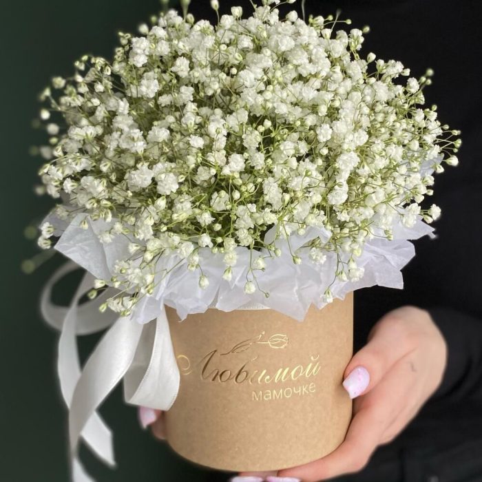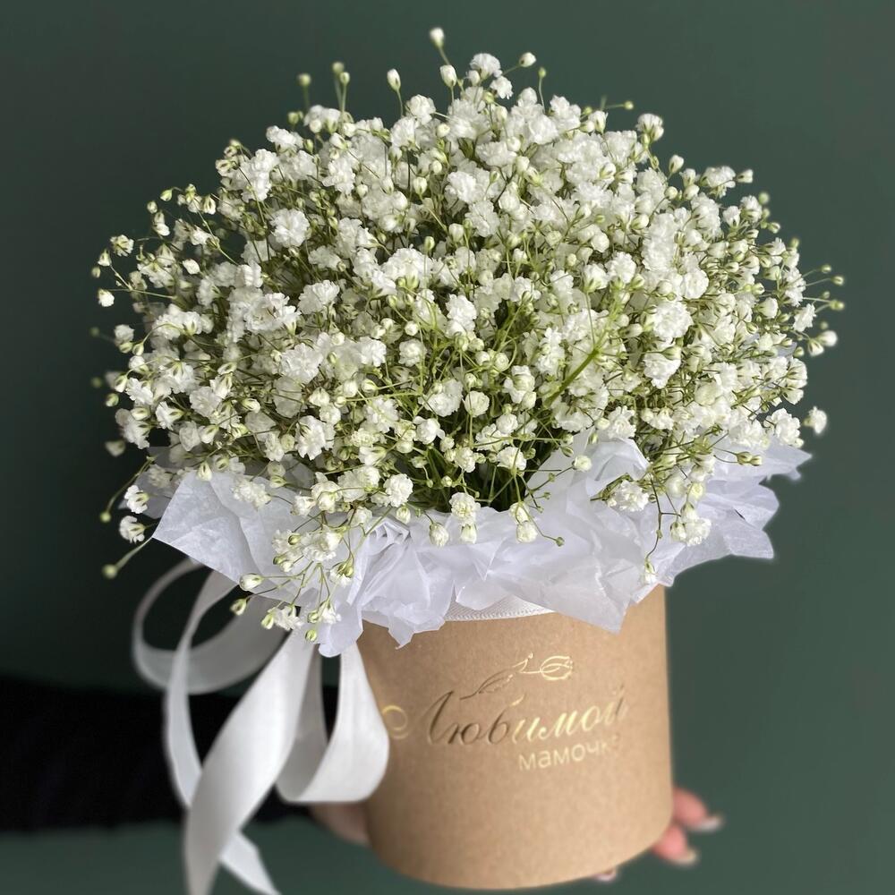 гипсофила белая ветка – 5 шт.коробка шляпная с надписью – 1 шт.Оазис флористический – 1 шт.Тишью – 1 шт.бант атласный двойной – 1 шт.транспортировочная упаковка – 125 шт.