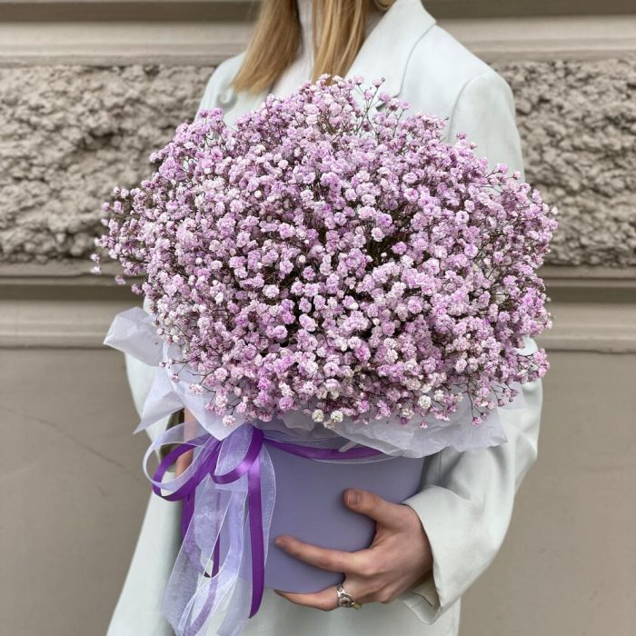 Коробочка с сиреневой гипсофилой Сюрприз