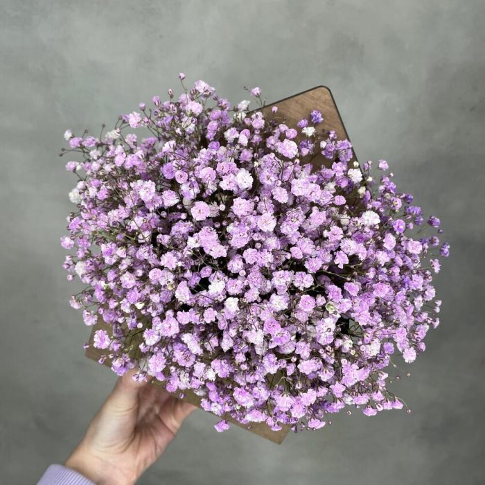 “Сиреневый туман” – композиция из гипсофилы в шляпной коробке