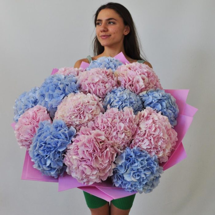 Гортензия микс – 15 шт.Фоамиран (упаковка) – 4 шт.Лента атласная – 1 шт.