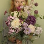 Лавандовый раф – Букет с пионами и луком