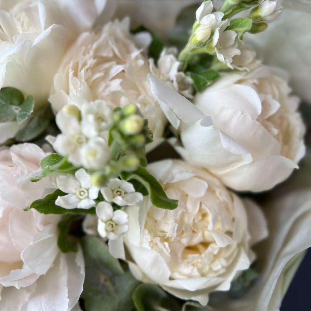 Букет из пионов, оксипеталум и эвкалипт «Летняя свежесть»