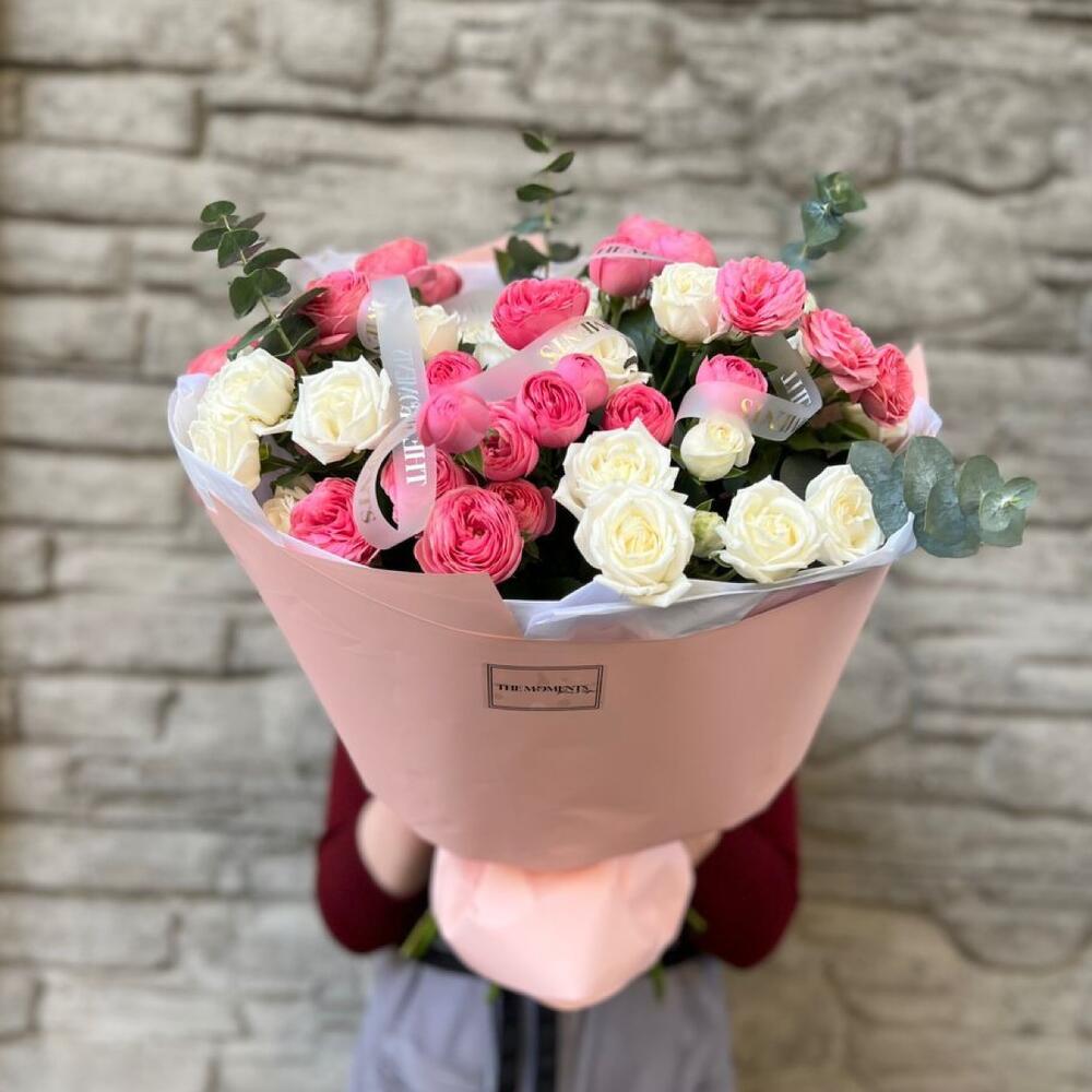 Гвоздики, Кустовые розы, Пионовидные розы, Розы