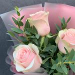Букет из 3 розовых роз и зелени «Токио»