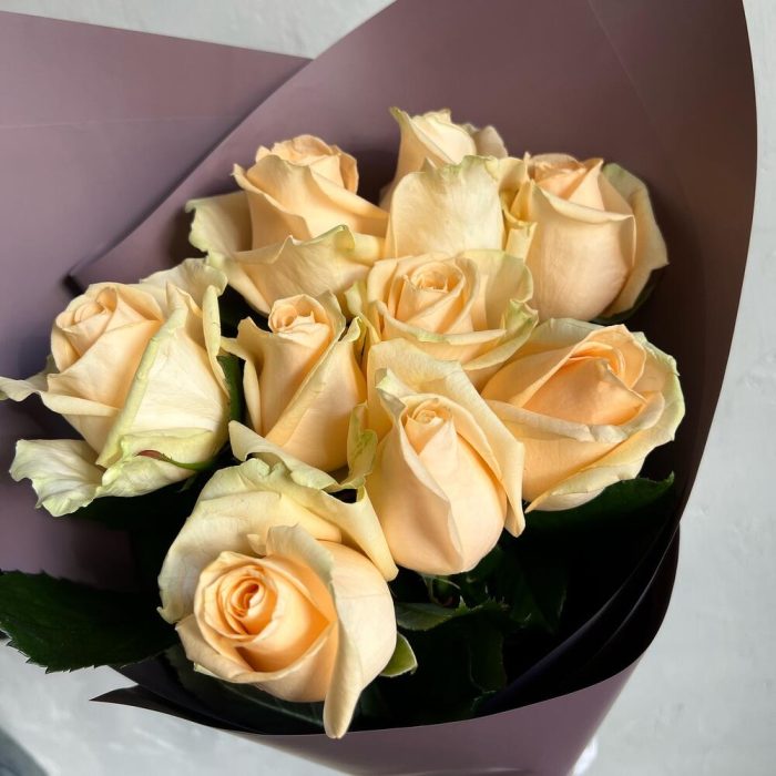 Роза одноголовая – 9 шт.Упаковка дизайнерская – 2 шт.Лента атласная – 2 шт.