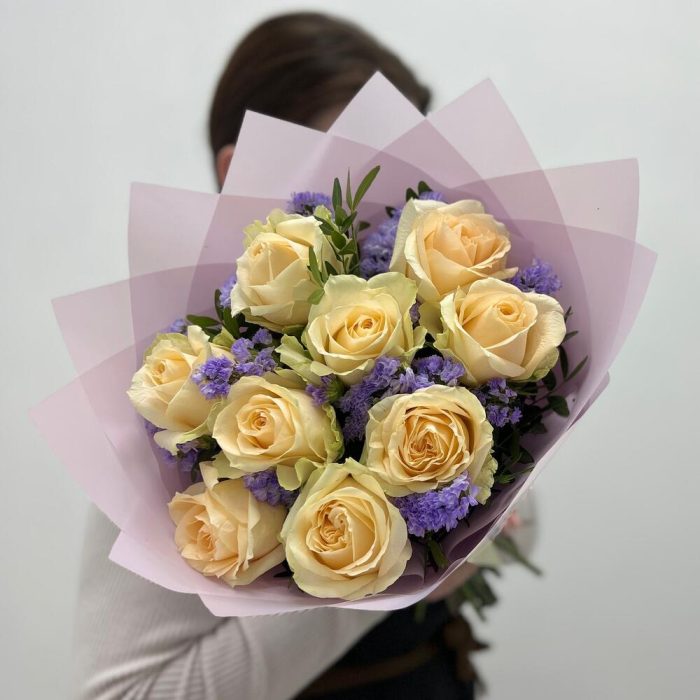 Букет из Чайных Роз и Статицы