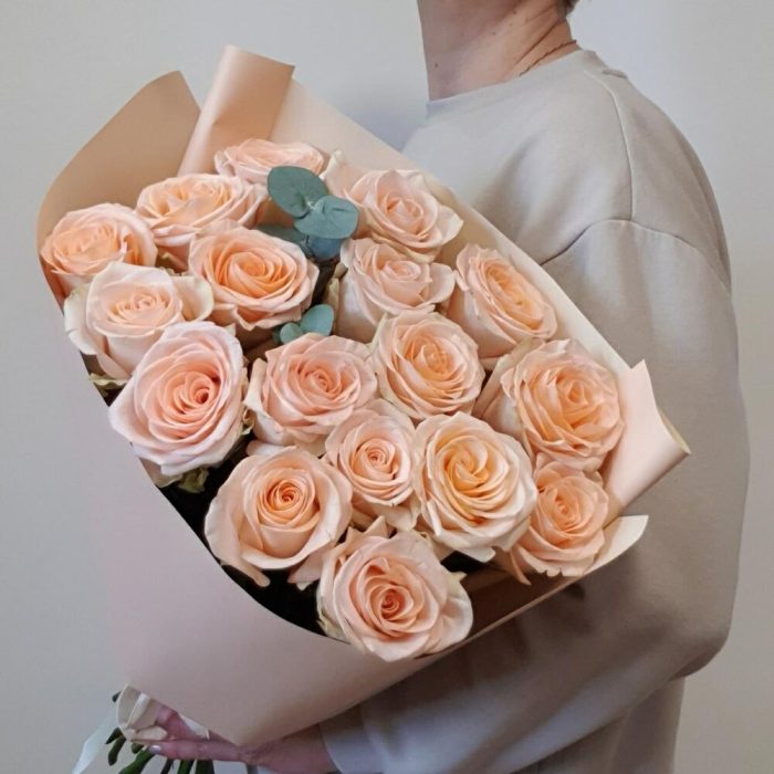 Эвкалипт – 1 шт.Упаковка – 2 шт.Лента атласная – 1 шт.Роза тиффани – 17 шт.