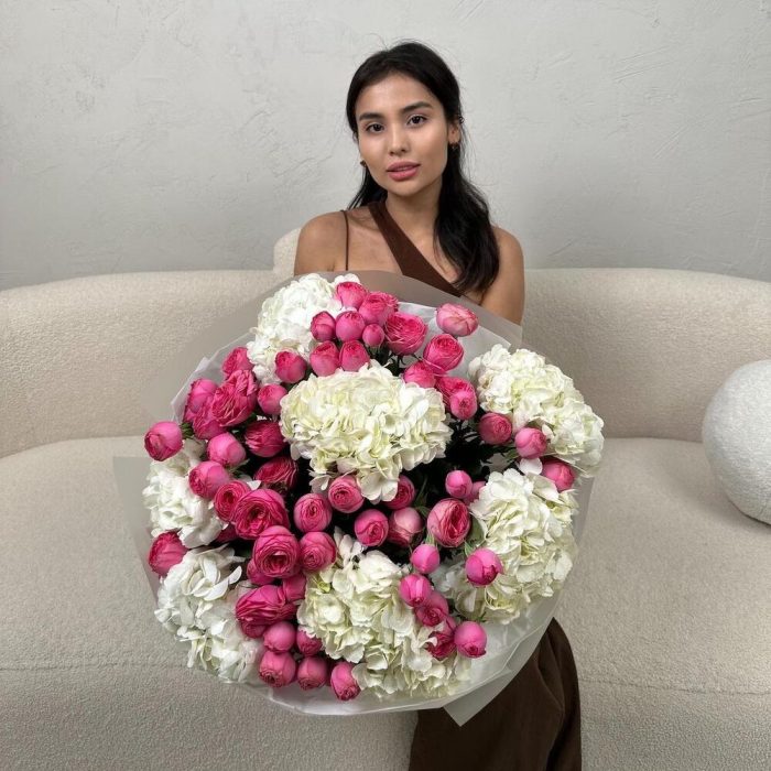 Гвоздики, Кустовые розы, Пионовидные розы, Розы