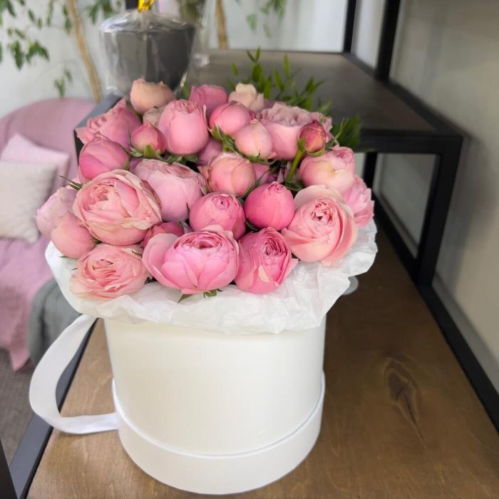 Цветы в коробке с пионовидной розой