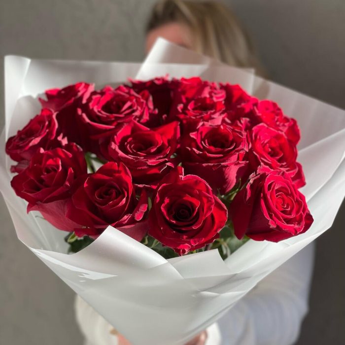 Роза Эквадор – 15 шт.Фирменная упаковка – 1 шт.