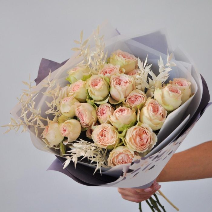 Кустовая пионовидная роза в букете