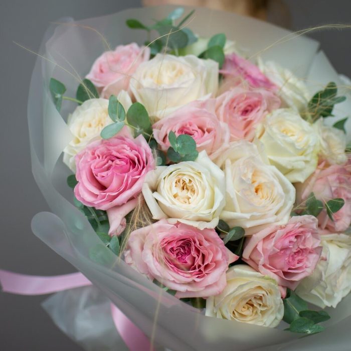 Эвкалипт – 2 шт.Упаковка дизайнерская – 1 шт.Стифа – 3 шт.роза ароматная охара – 19 шт.