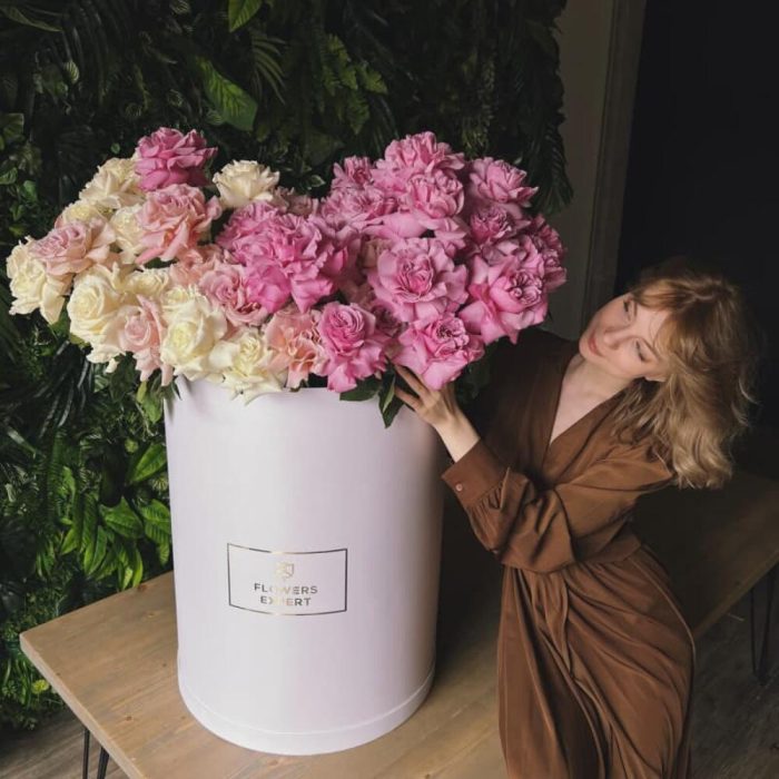 Французская роза – 101 шт.Шляпная коробка – 1 шт.