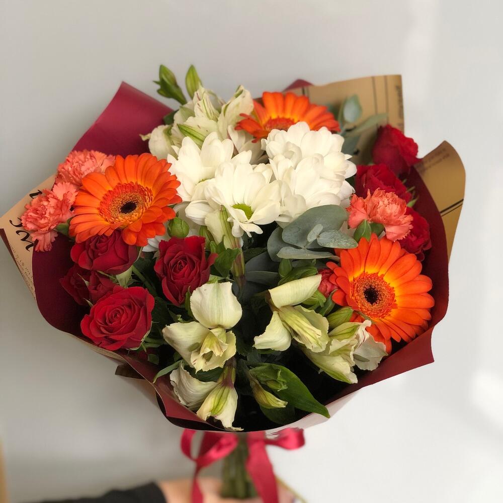 Категорий: Альстромерии, Гвоздики, Кустовые розы, Розы, Хризантемы