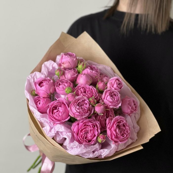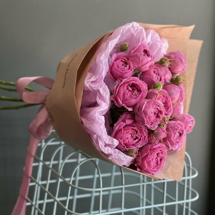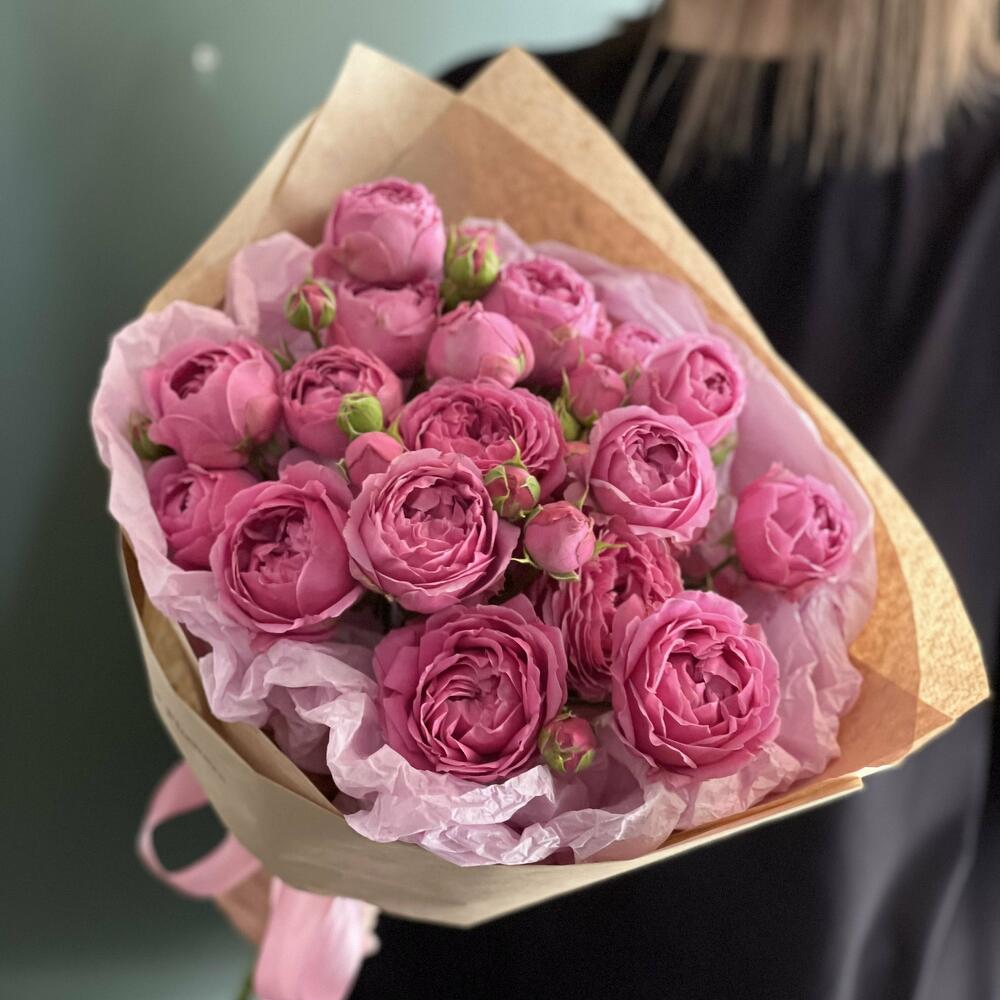 Лента – 2 шт.Упаковка – 2 шт.Роза кустовая пионовидная – 5 шт.