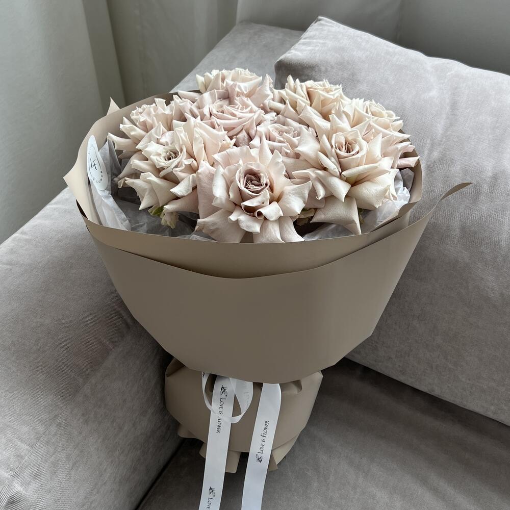 Роза menta – 9 шт.тишью хрустящая – 1 шт.пленка матовая пудровая – 1 шт.