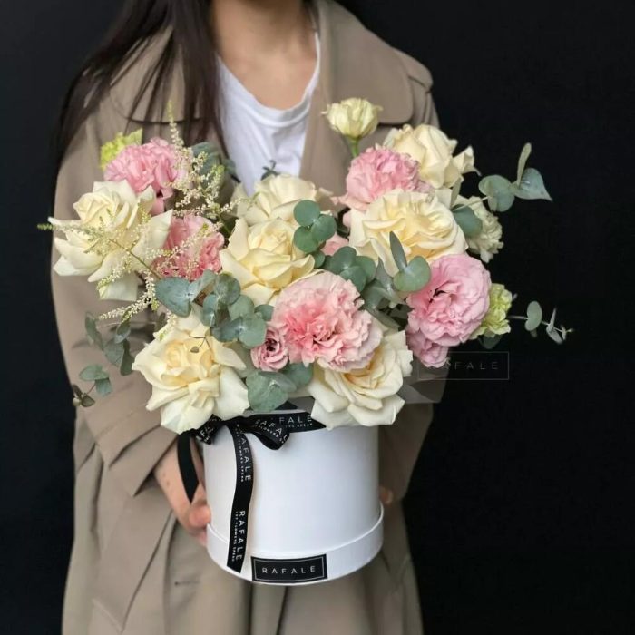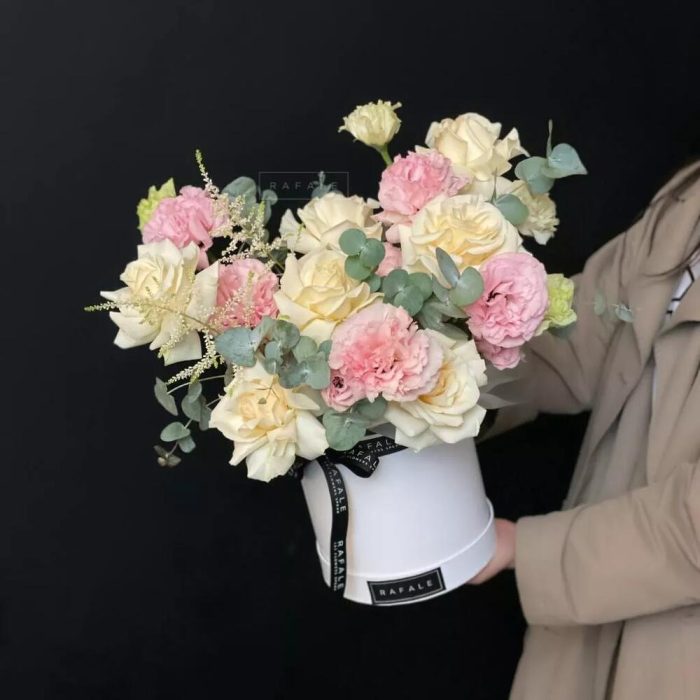 “В твоих глазах”: нежная шляпная коробка с французскими розами