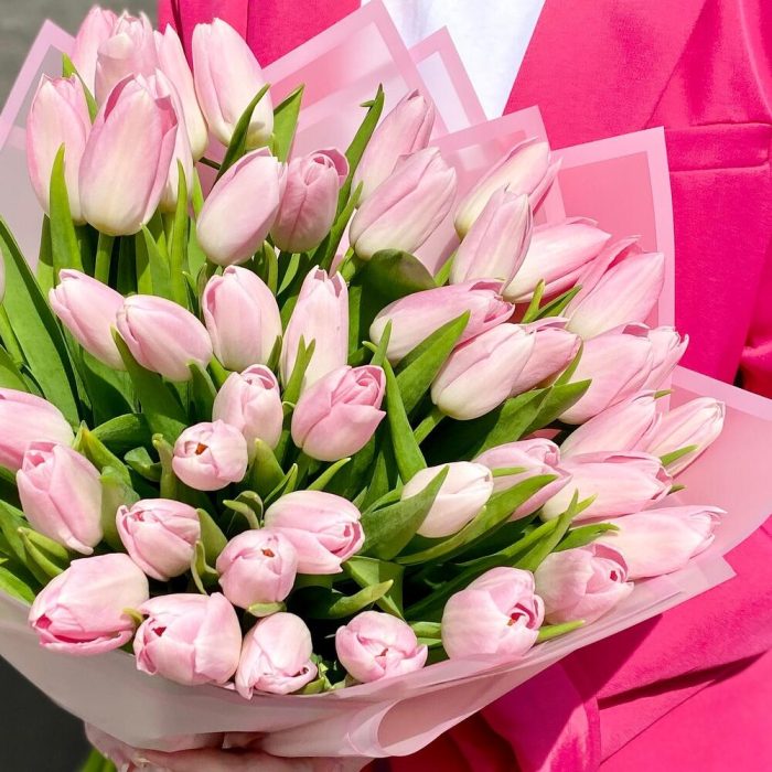 Букет премиум 51 нежно-розовых тюльпанов